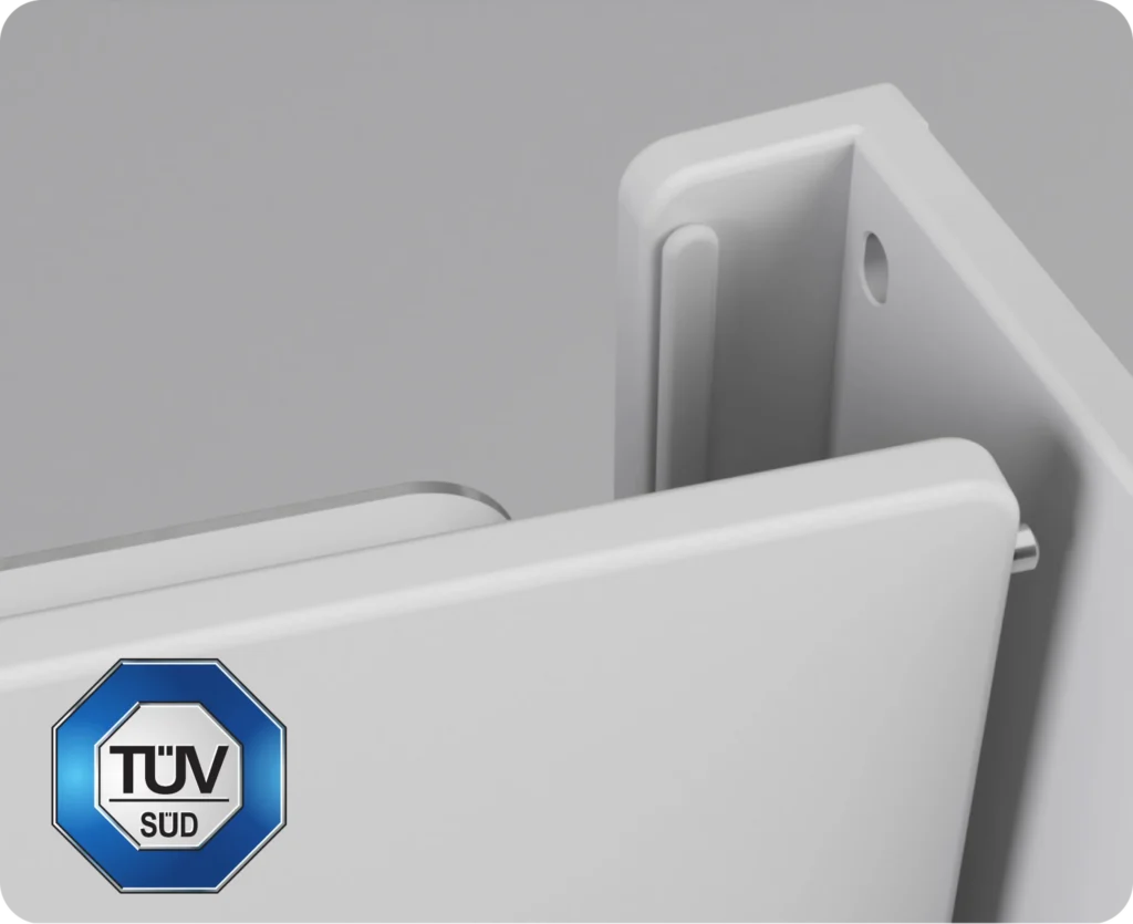 Kromě testování samotného výrobku je i náš výrobní proces auditován podle požadavků stanovených ÉMI-TÜV-SÜD. Certifikace ÉMI-TÜV-SÜD potvrzuje kvalitu a bezpečnost našich dvířek do vany a našeho instalačního postupu již deset let.